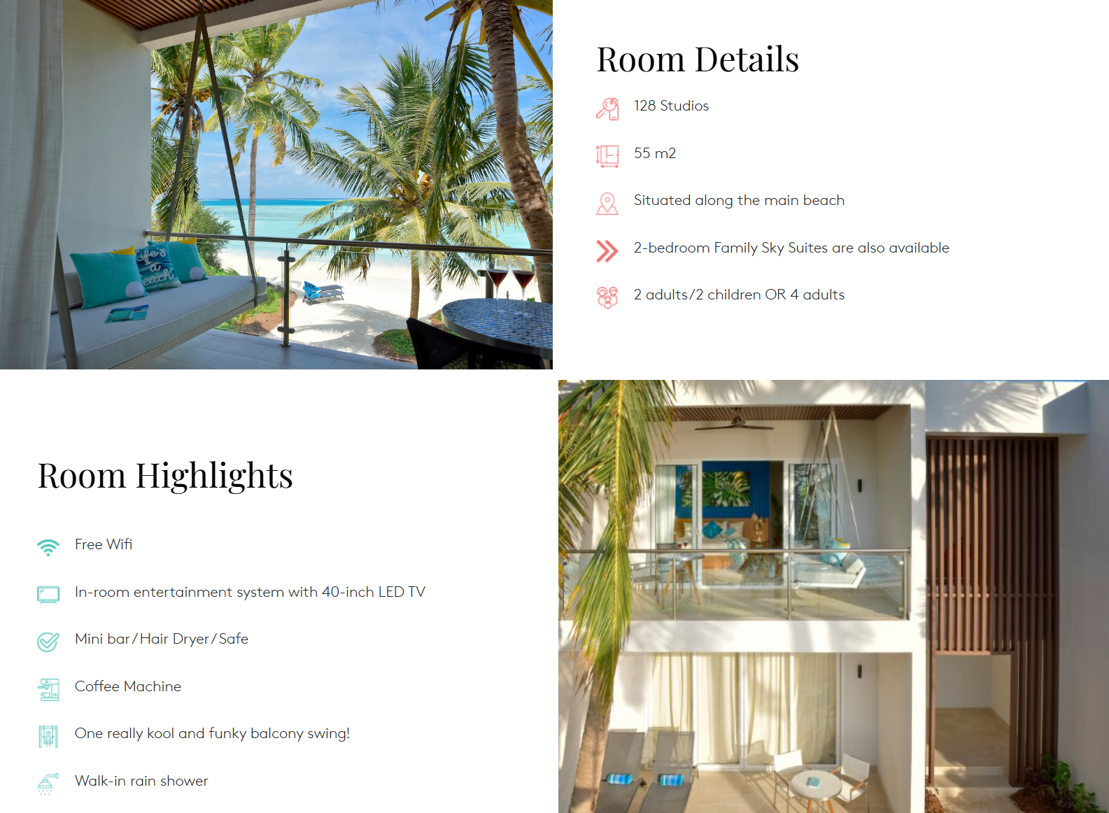 • Beach Club (풀 바) : 10시부터 18시까지 운영, 디제이 쇼와 풀 파티 등 화려한 이벤트가 있는 비치 클럽 바