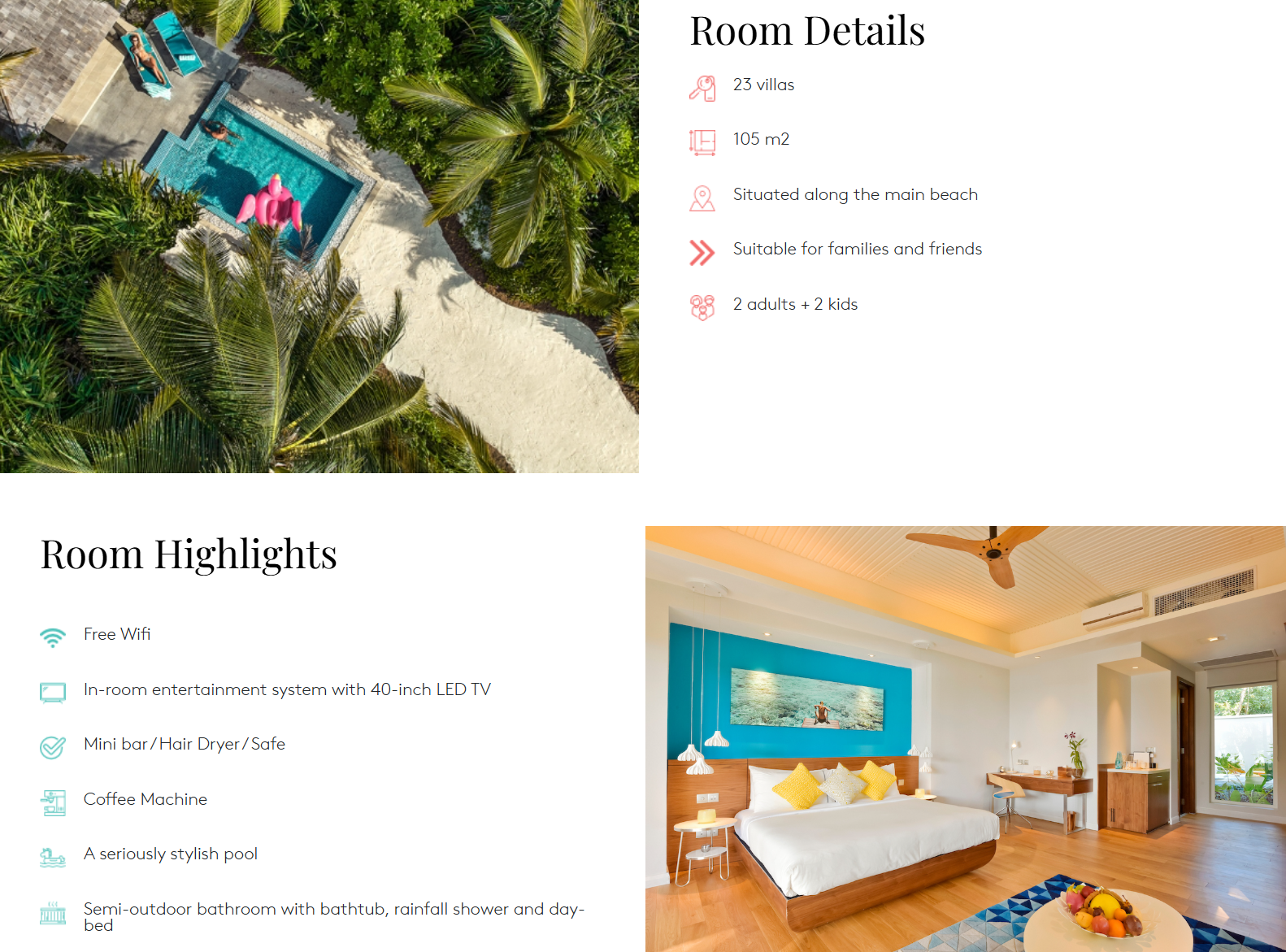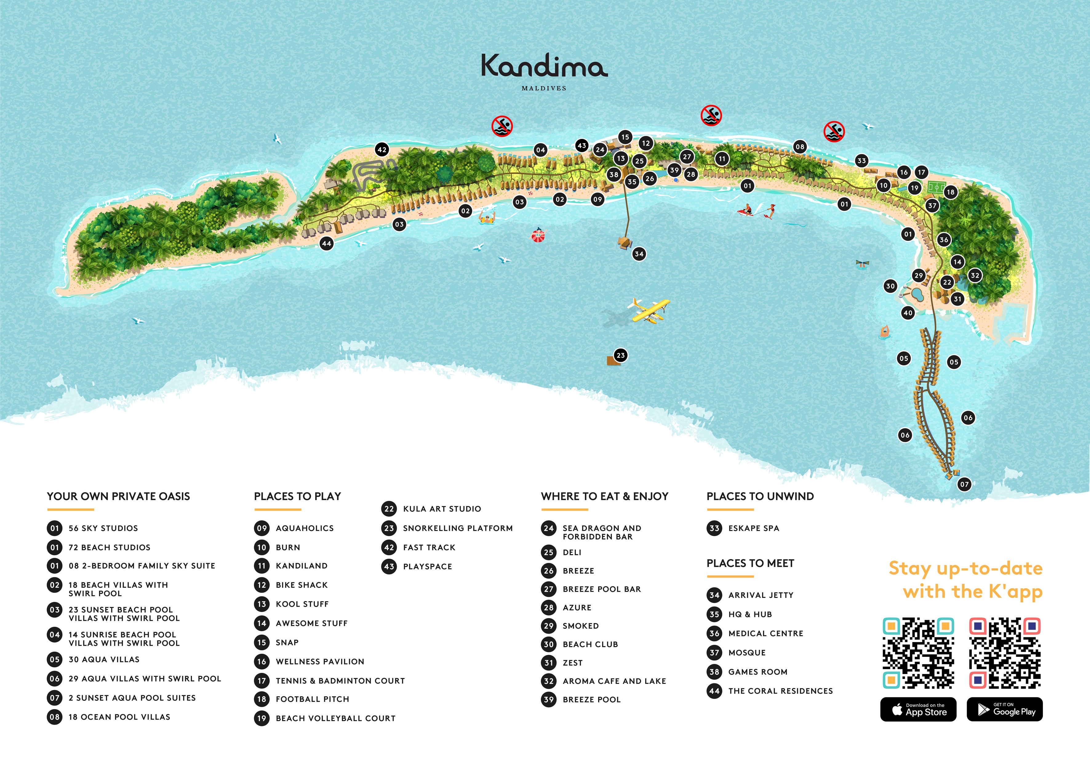 • Breeze Pool Bar (풀 바) : 10시부터 24시까지 운영, 라이브 뮤직과 더불어 환상적인 파노라마 선셋 뷰, 섬 중앙에 위치한 메인 풀 바