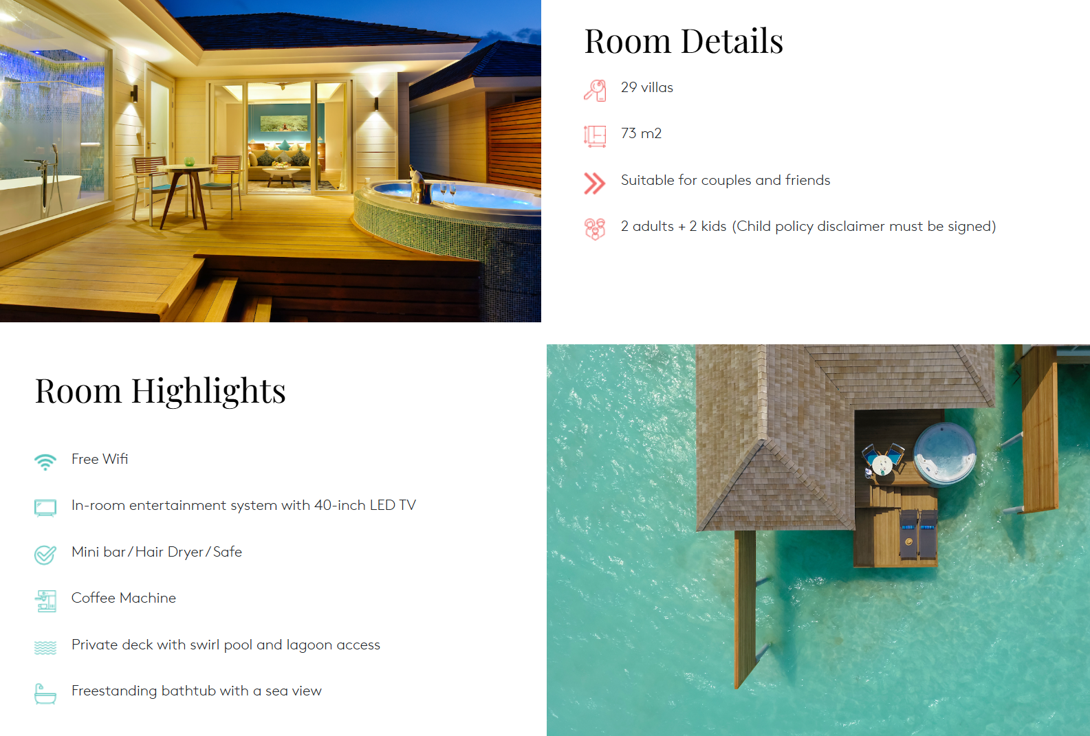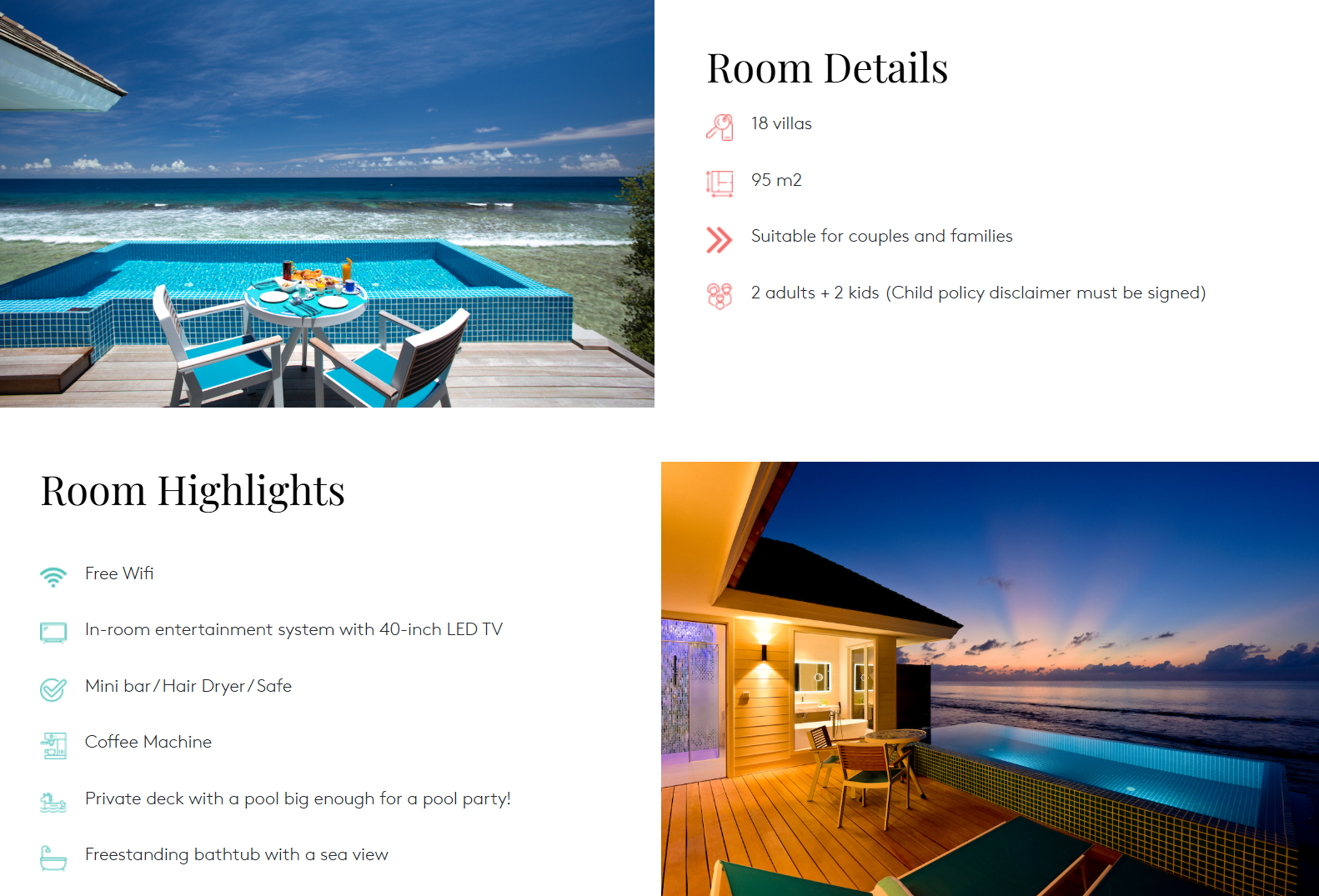 • 미니바 1일 1회 제공 (제공된 와인, 맥주, 소프트 드링크, 스낵 포함)