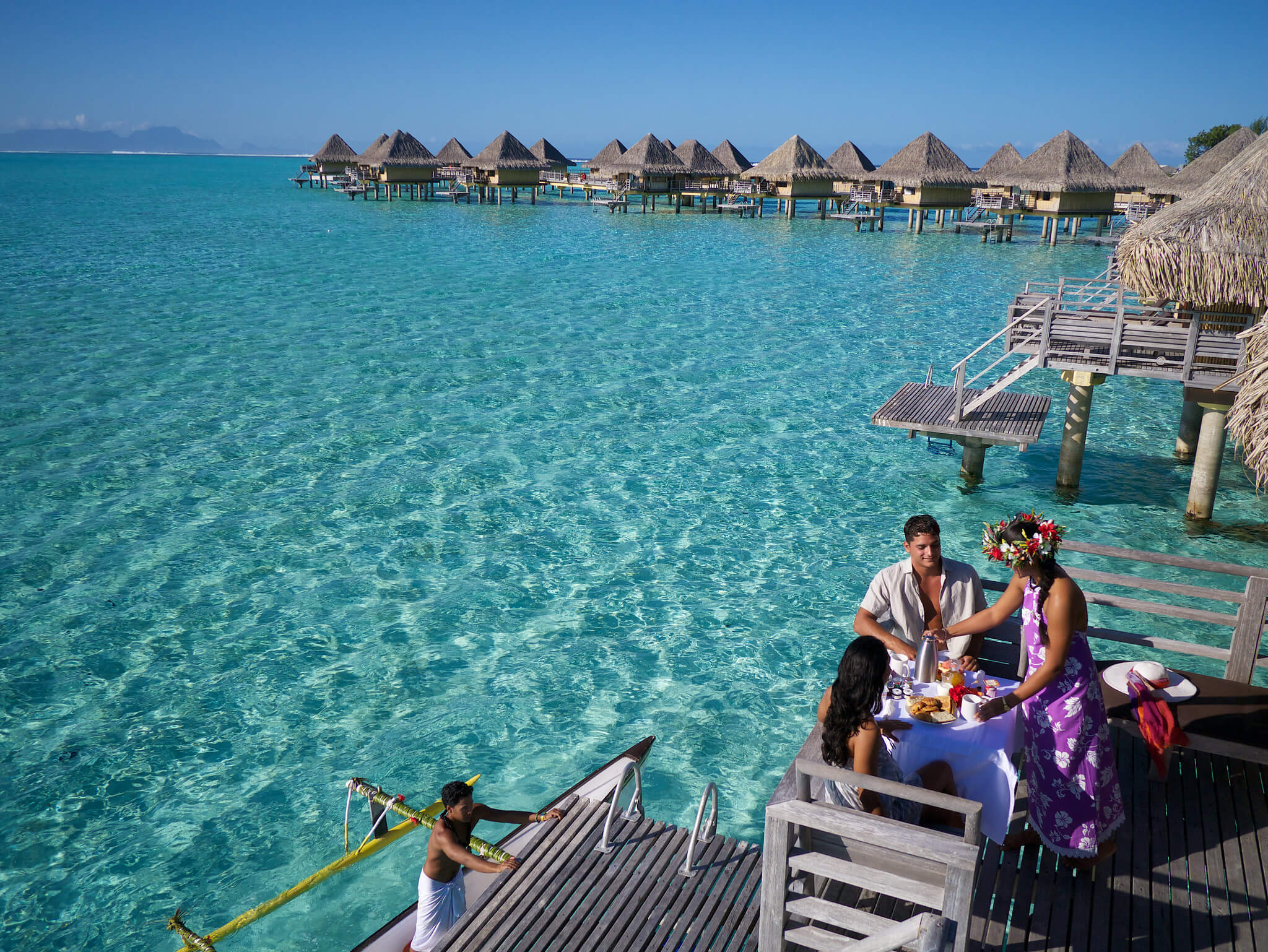 인터컨티넨탈 르 모아나 리조트는 보라보라 메인섬의 남쪽해안 마티라 베이에 자리잡은 디럭스 4성급 리조트로 보라보라 공항으로부터 보트로 약 30분 거리에 위치하고 있습니다. 객실은 총 61개로 12개의 비치 방갈로, 48개의 오버워터 방갈로, 1개의 오버워터 방갈로 스위트로 구성되어 있습니다. 오버워터 방갈로는 비치, 라군, 오테마누 마운틴, 오션 뷰로 객실에서 모이는 뷰의 차이로 구분됩니다~ 오버워터 방갈로와 함께 자연 환경과 완벽한 조화를 이루며 환경과 지역 전통 보호에 집중하는 리조트입니다.